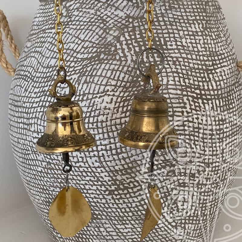 En Nepal se ven siempre estas campanas a la entrada de las casas, templos y altares. Son campanitas de oración y bendición. Se cree que son un medio de comunicación y conexión con lo divino, anuncian que llegamos y humildemente, estamos dispuestos a recibir.
